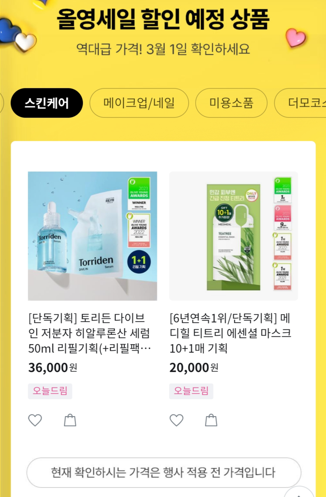 할인 품목은 올리브영 어플에서만 확인이 가능하게 되어있는데, 어플 깔기 귀찮으신 분들을 위해 앱에서 가져온 정보들도 있으니 참고하시면 좋을 것 같습니다. 올영세일 사전쿠폰 발급 사이트로 바로 이동하실 분들은 아래 바로가기를 참고해주세요. 그럼 시작하겠습니다.