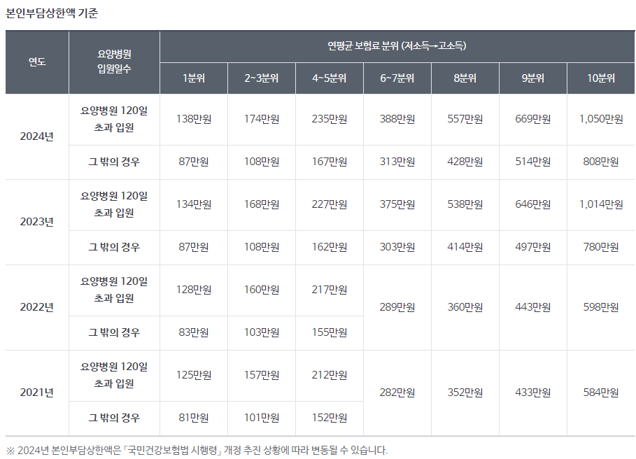 - 작년까지는 동일 질환에 대한 진료비만 합산했으나 2024년부터는 모든 질환 병원비 합산가능
