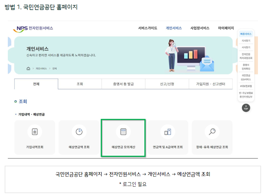 1. 국민연금 공단 홈페이지에서 조회하기