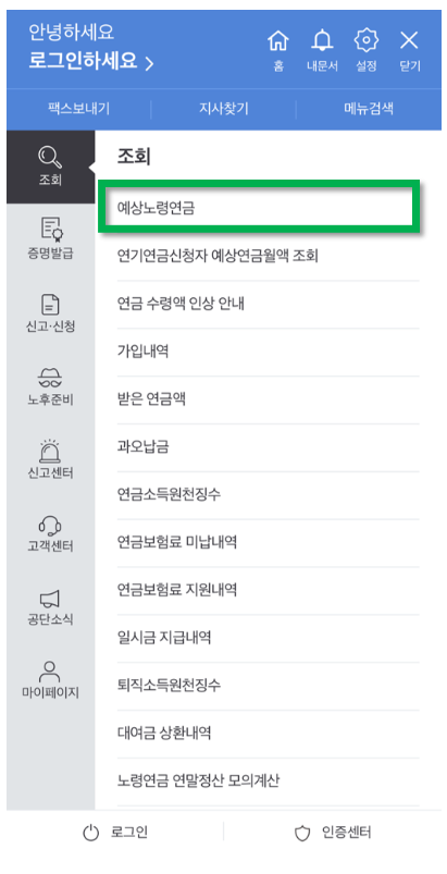 국민연금 예상수령액 조회하기