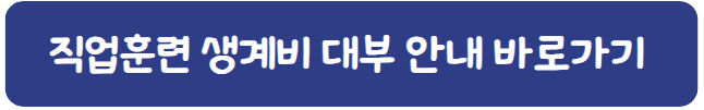 - 생계비 지원 : 고용보험법 제 29조에 따라 생계비에 대한 부담 없이 장기간 체계적인 훈련을 받을 수 있도록 근로복지 공단을 통해 생계비를 빌려주는 정책이 있습니다. (실업급여와 중복 수급은 불가합니다)