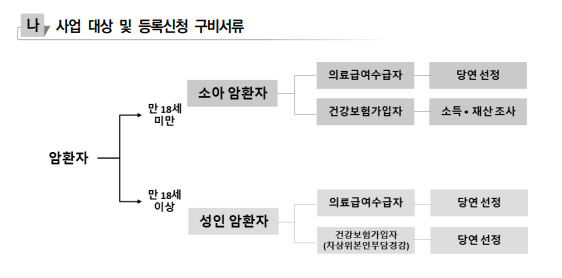 - 18세 미만의 아동 중 암환자에 대한 의료비는 만 18세에 도달하는 연도까지 연속 지원받을 수 있습니다.