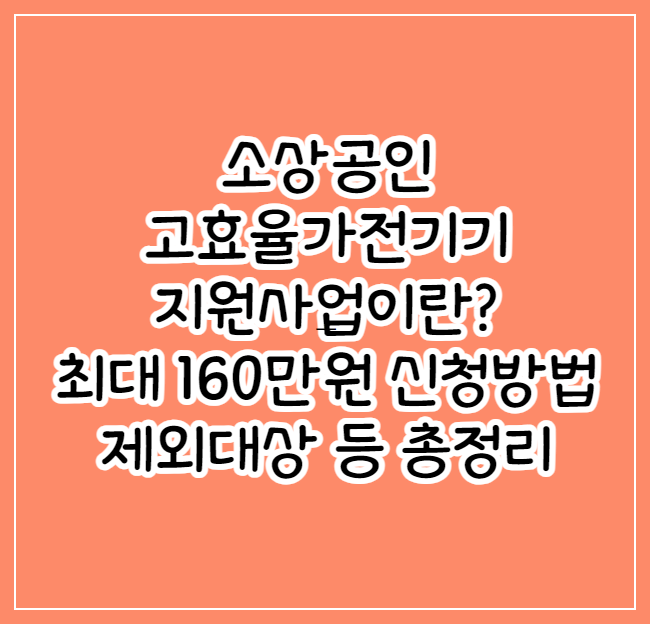 한전에서는 소상공인을 대상으로 에너지 효율개선과 전기요금 부담 완화를 돕기 위해 고효율 기기(에너지효율 1등급) 구입 시 구매 비용의 일정비율(최대 160만 원)을 지원해 주는 소상공인 고효율기기 지원사업을 시행하고있습니다. 오늘 포스팅 끝까지 읽어보시면 신청절차부터 지원대상자, 대상제품까지 모두 확실하게 아실 수 있을 거예요. 예산 소진 시 조기 종료된다고 하니 빠르게 확인하시고 해당되신다면 지원금 꼭 받으셨으면 좋겠습니다.