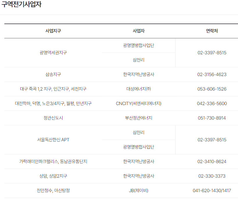 - 구역전기사업자로부터 전기공급을 받고 있는 고객은 해당지역 사업자에게 별도로 신청을 문의해야한다고 합니다.