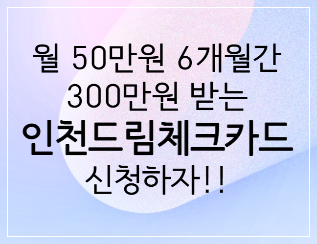 매월 드림체크카드 30만원 입금 및 인천이음카드 소비쿠폰 20만원 지급!