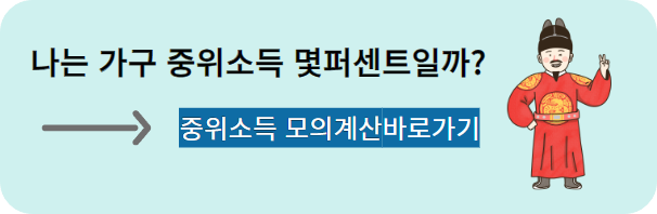 아래 모의계산 사이트에서 가구원수, 월급여, 자산가액 등을 입력하면 자동으로 중위소득 몇퍼센트에 해당되는지를 계산해주기 때문에 편리하게 확인하실 수 있습니다.