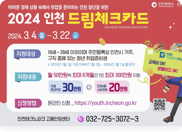 인천드림체크카드 신청자격 (나이, 거주, 미취업, 가구소득)
