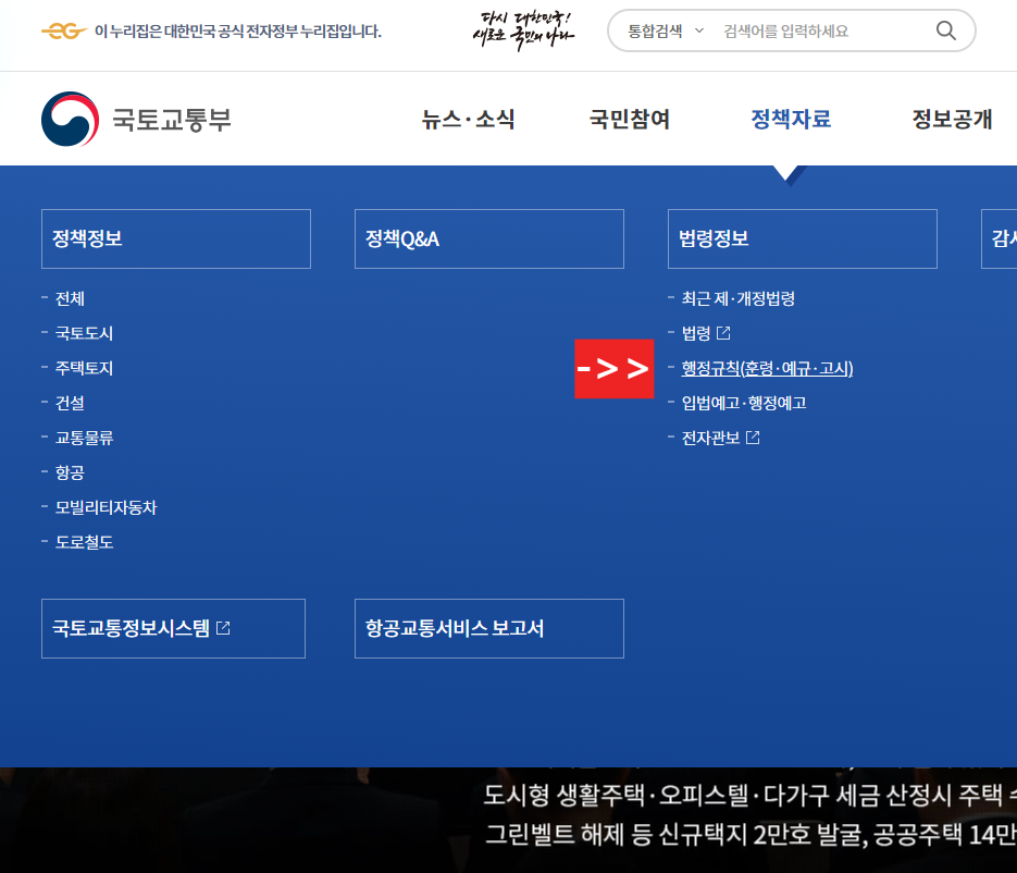 1. 먼저 포털사이트에서 국토교통부를 검색해서 국토교통부 사이트에 접속합니다.