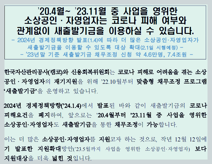 2024년 폐업자 새출발기금 지원대상이 확대되었습니다.