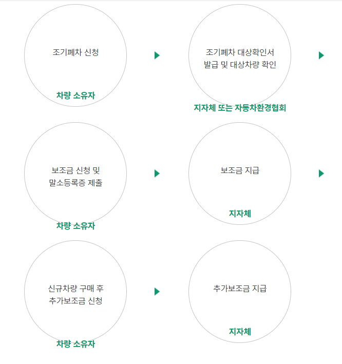 3. 조기폐차 신청 후 승인이 되면 소유주에게 지자체 또는 협회에서 지급대상 확인서를 발급해줍니다. 자동차를 폐차시킨 후 보조금 지급청구서와 지급대상 확인서, 말소등록증 등 관련 서류를 첨부하여 협회 또는 지자체에 보조금을 신청하시면 기본 보조금을 지급받으실 수 있습니다.