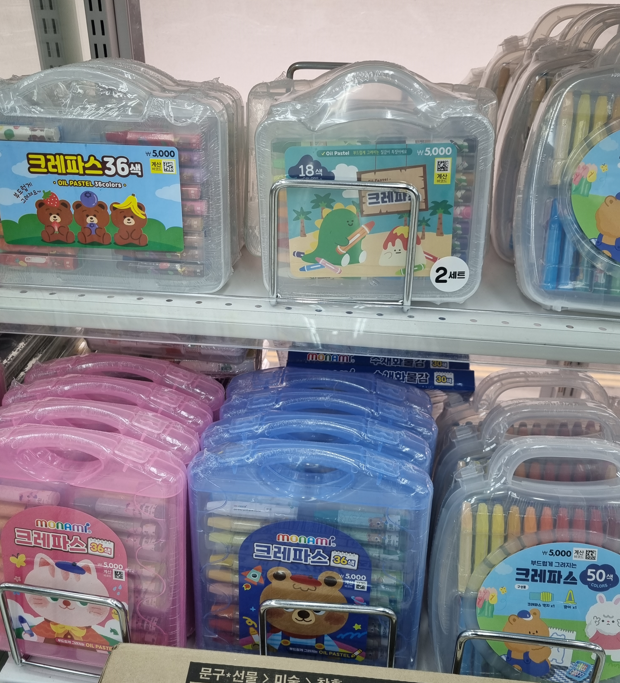 다이소 신학기 준비물 : 크레파스, 색연필, 물감 등 미술용품