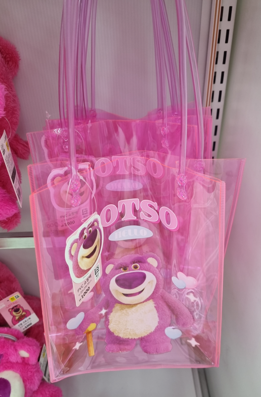 지난번에는 못봤던 것 같은데 오늘은 랏소베어 가방도 여러가지가 있었습니다. 인형 가방이라서 아이들이 너무 좋아할 것 같아요. 1000원에 파는 랏소베어 수영장가방도 저렴하고 귀여웠습니다.