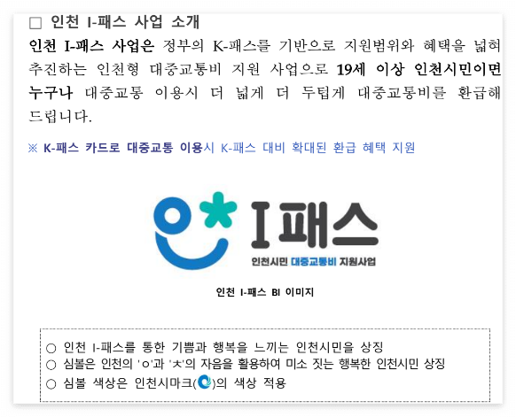 인천시에서는 정부의 K-패스를 기반으로 하되 지원 혜택을 더욱 확대한 인천형 대중교통비 사업인 I-패스 사업을 올해 5월부터 시행한다고 합니다. 19세 이상 인천 시민이면 누구나 이번 혜택을 받으실 수 있다고 하니까 꼭 한번 확인해 보시기 바랍니다.
